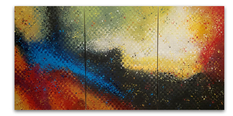 hand painted, hand woven aluminum mounted on hard wood frame by John Gunther